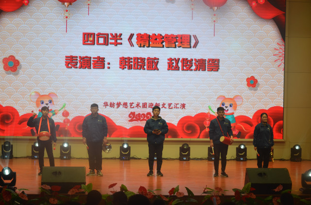 1月4日,繼公司舉行持續(xù)深化精益生產(chǎn)年度總結(jié)動員大會之后,精彩紛呈的“同心筑夢·贏戰(zhàn)2020——華紡夢想藝術(shù)團迎新文藝匯演”與廣大員工見面。整場文藝匯演洋溢著吉祥喜慶的氣氛,充盈著昂揚向上的旋律,展現(xiàn)出華紡人樂觀、奮進的精神風貌。