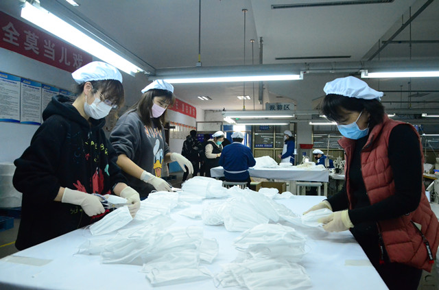 在此之前,公司已組織部分員工提前復工,投入疫情防控應急物資口罩生產當中。隨著印染、家紡成品等產業板塊恢復生產,員工返崗率達95%以上。公司在嚴格規范做好信息排查、防疫宣傳、通風換氣、環境消毒、測量體溫、人員管控等疫情防控工作基礎上,廣大返崗員工積極投身生產工作,追求優質高效,為打贏疫情防控阻擊戰貢獻華紡力量。