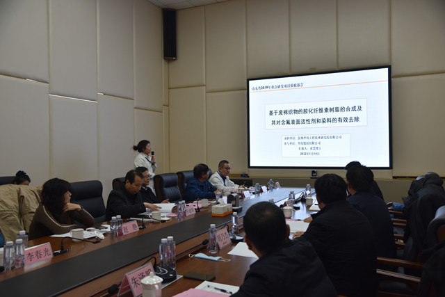 導(dǎo)讀:1月14日,山東省重點(diǎn)研發(fā)計(jì)劃(公益類(lèi))項(xiàng)目“基于廢棉織物的胺化纖維素樹(shù)脂的合成及其對(duì)含氟表面活性劑和染料的有效去除”項(xiàng)目驗(yàn)收會(huì)議在公司舉行。