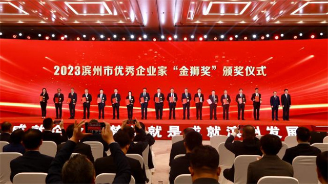 會上,對在品質濱州建設過程中作出突出貢獻的優秀企業家和先進單位進行了表彰頒獎,公司黨委書記、董事長盛守祥先生榮獲2023濱州市優秀企業家“金獅獎”。