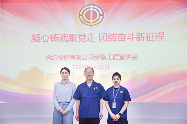 勞模就在身邊,讓我們以勞模工匠為榜樣,以宣講會為動力,從我做起,從現(xiàn)在做起,比學(xué)趕超。學(xué)習(xí)模范、尊重模范、爭做模范,為公司高質(zhì)量發(fā)展和“百年華紡”的愿景努力奮斗!