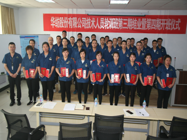 6月18日,公司專業技術輪訓班第三期結業暨第四期開班儀式,在公司工程技術研究院舉行。儀式上,工程技術研究院副院長孫紅玉對第三期輪訓工作進行了總結;總工程師羅維新宣讀了《關于對染整專業技術培訓班(第三期)馬士國等35人準予結業的通報》、《關于對染整專業技術培訓班(第三期)優秀團隊、優秀學員的表彰決定》、《關于對染整專業技術培訓班(第四期)學員組成的通報》;總經理閆英山為第三期輪訓班結業學員頒發結業證書,為優秀團隊花二車間小組及馬士國、李義、陳愛民等三名優秀學員頒發獎狀證書,為第四期學員頒發了專業學習書籍;王金亮、馬士國、商曉峰分別代表往期學員、本期學員和下期學員發言;公司黨委書記、董事長王力民圍繞堅持“求學、求知、求真、求實”的作風信條做了重要講話。